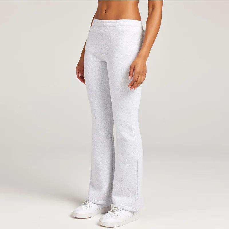 Pantalon de survêtement évasé d'hiver pour femmes, taille moyenne, jambe large personnalisée, fermeture à la taille élastique, polaire en polyester de coton-nouveauté