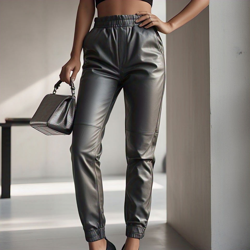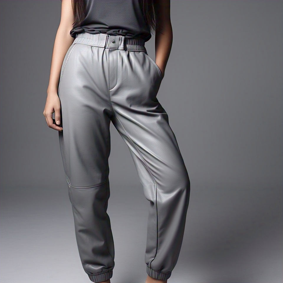 Keywords:Women's Plain Gray Leather Pant