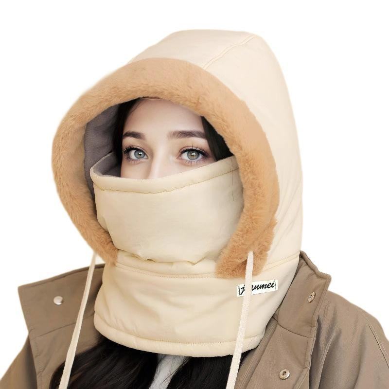 Masque de Ski Snowboard en soie d'hiver pour femme doublé en polaire avec protection auditive chaude intégrée Cou Lei Feng Chapeau pour adultes