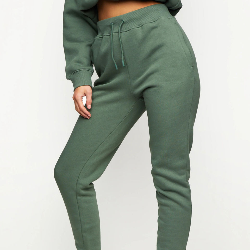 Women's Winter Sweatpants Wholesale Green Dyed Sweatpants with Elastic Waist and Drawstring