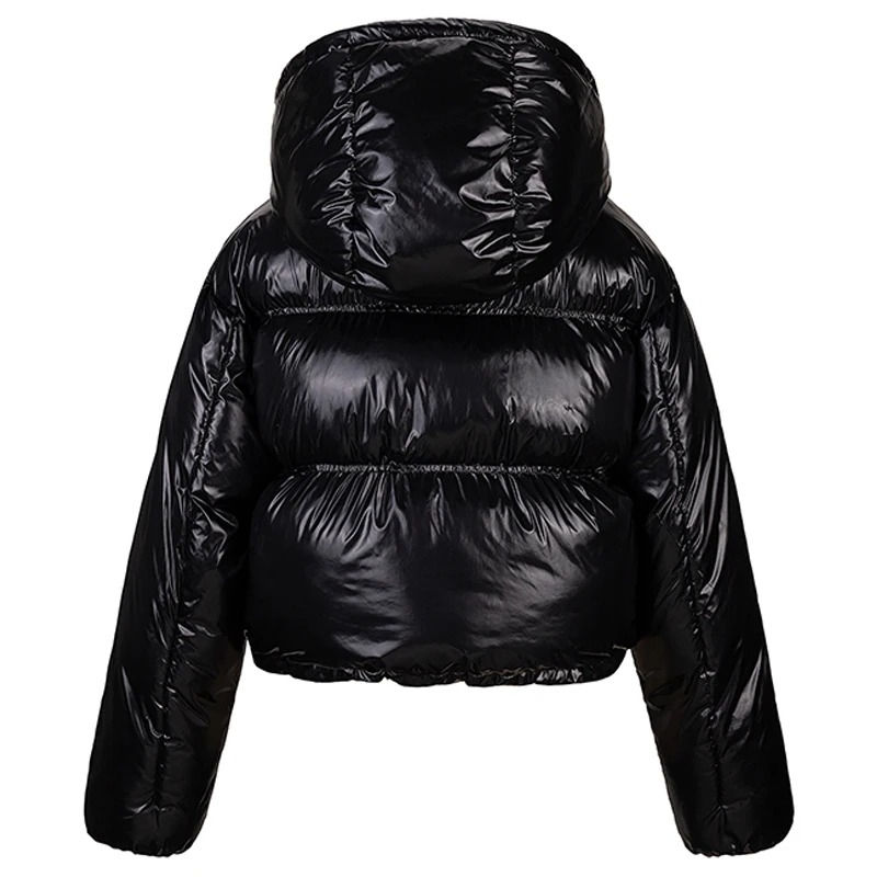 Women's Winter Warm Bubble Puffer Jacket Breathable Nylon Coat with Shiny Lightweight Zipper and Trendy Cropped Design