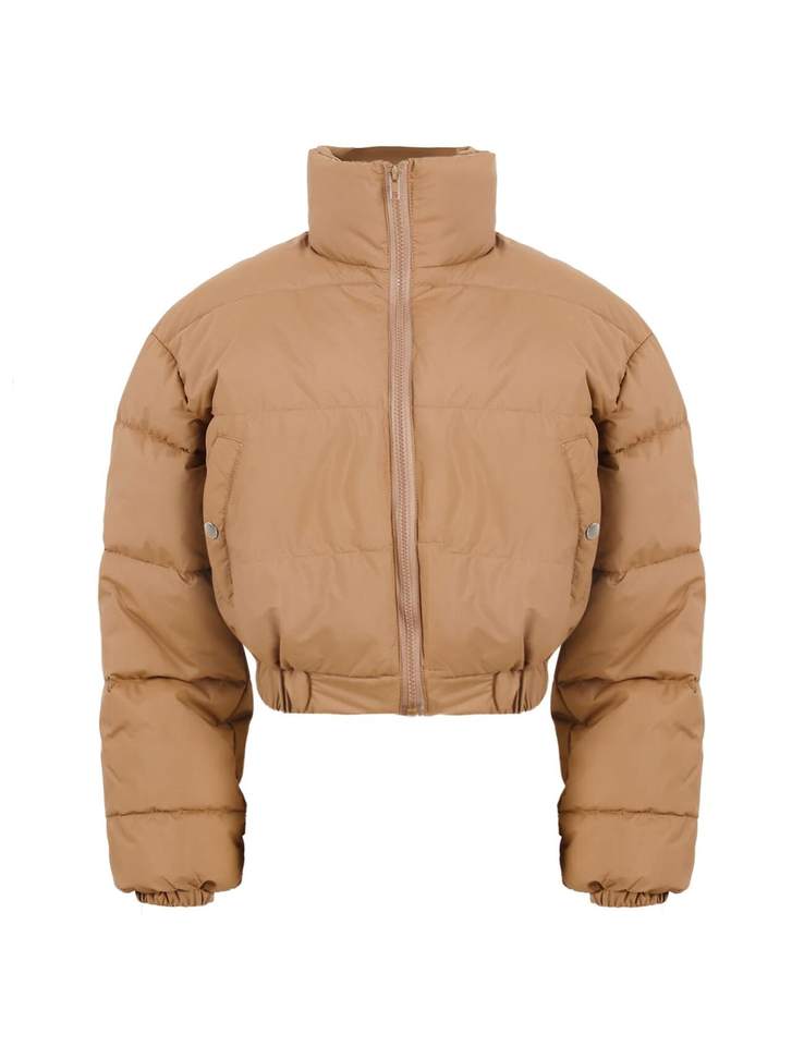 Veste en duvet chaude d'hiver pour femmes haut court court avec rembourrage fin à col montant pour manteau bouffant élégant pour dames en plein air