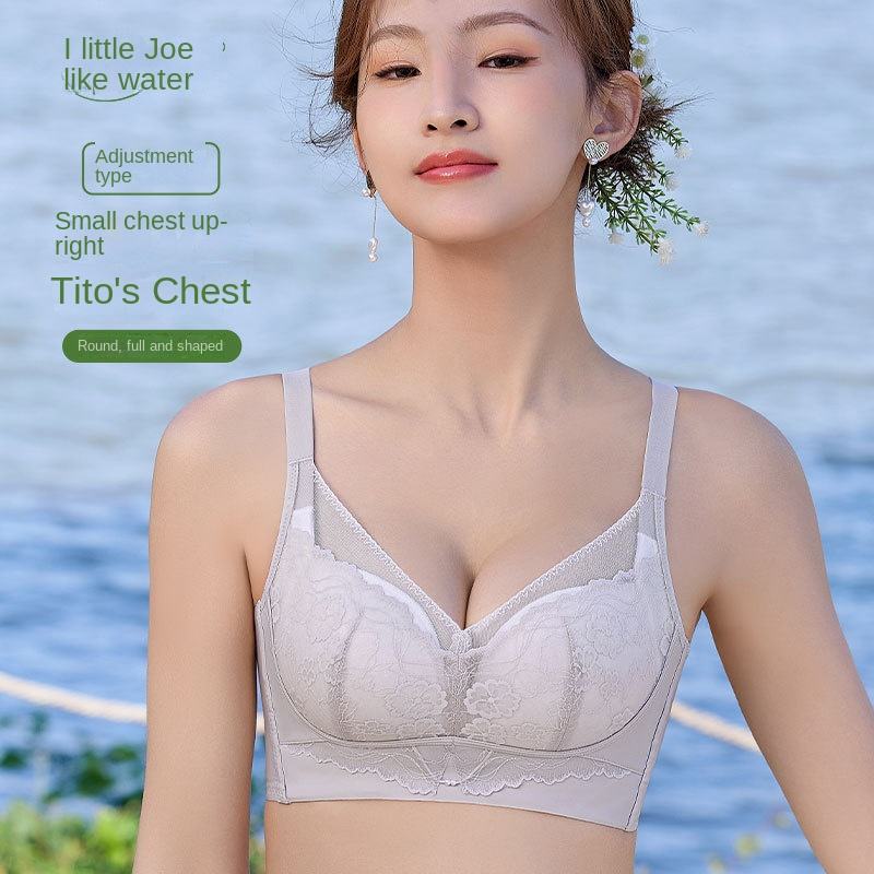 Soutien-gorge push-up floral sans armatures en modal pour femme, petite taille, effet push-up, dentelle, maille respirante, sexy, contrôle de la graisse sous les aisselles, réglable
