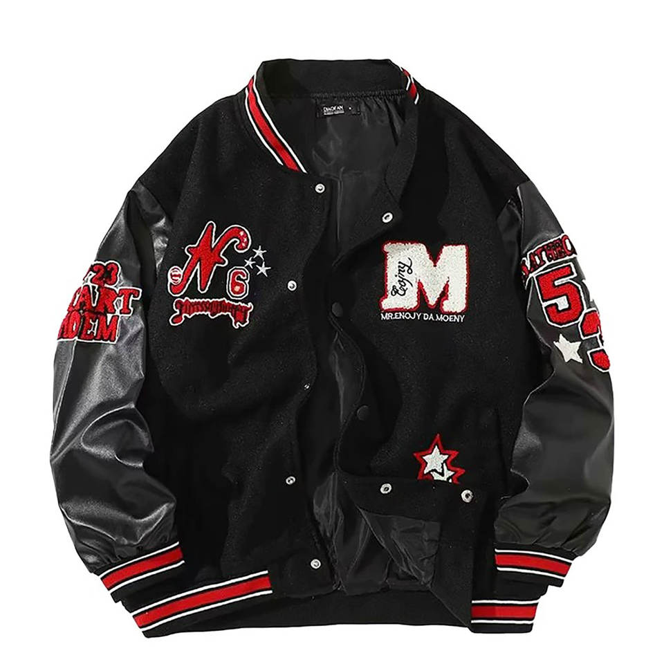 Veste universitaire en laine pour femmes avec manches en cuir imprimé lettres brodées taille XL veste pour femmes en gros