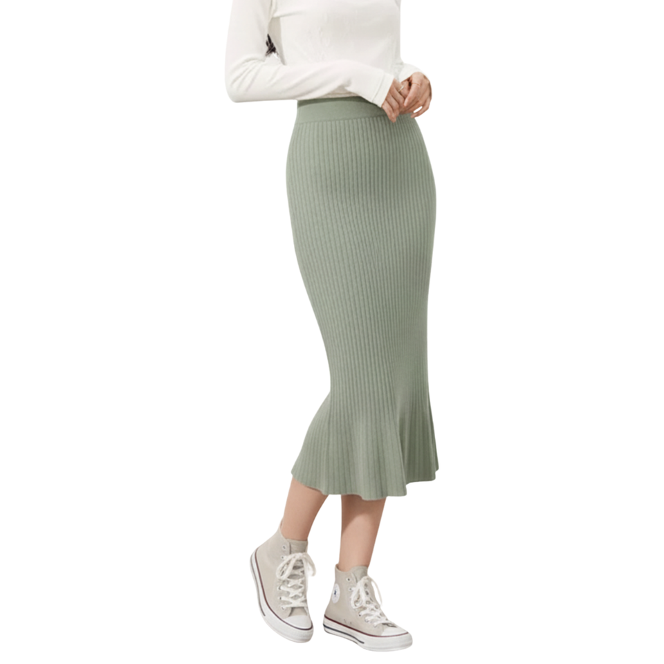 Jupe midi en laine côtelée pour femme, coupe sirène, taille haute, décontractée, extensible, ajustée, infroissable, écologique, vente en gros