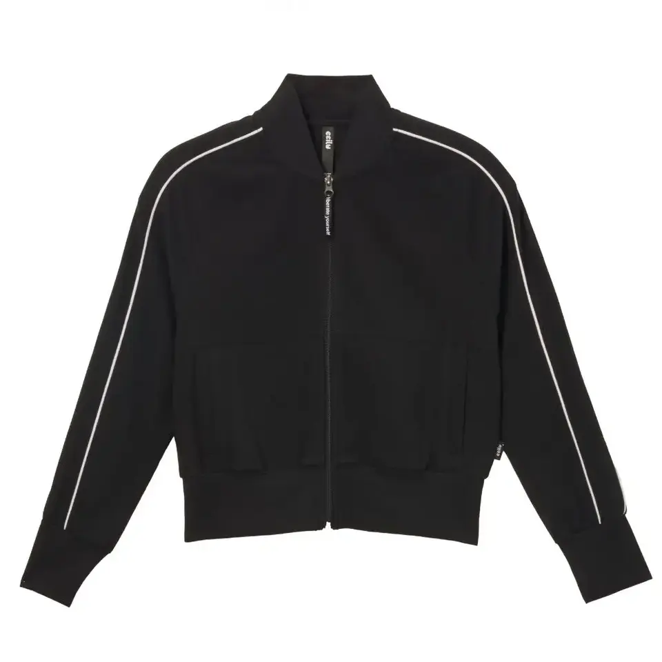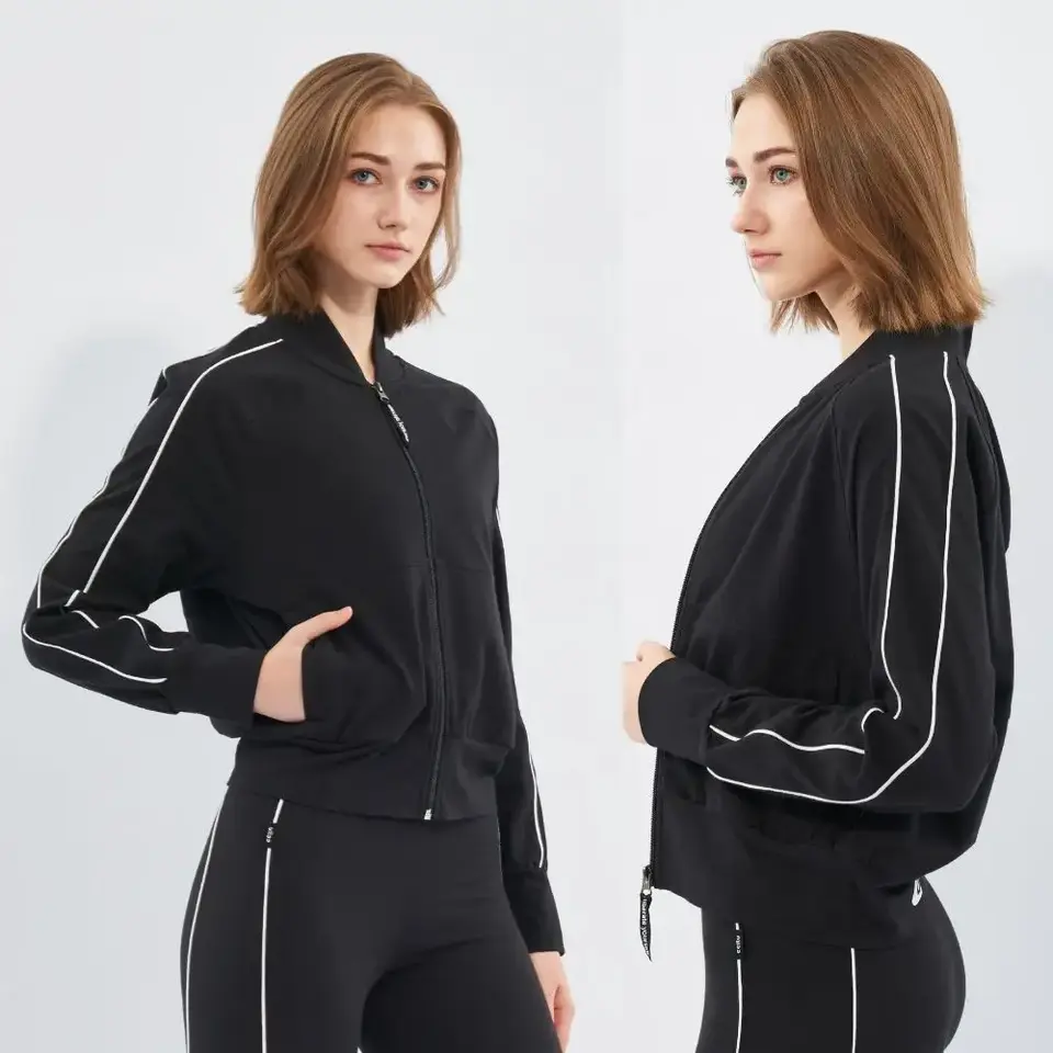 Veste d'entraînement pour femme Cropped Zip Up Retro Stripe Sleeve Respirant et extensible pour Active Wear Gym Top