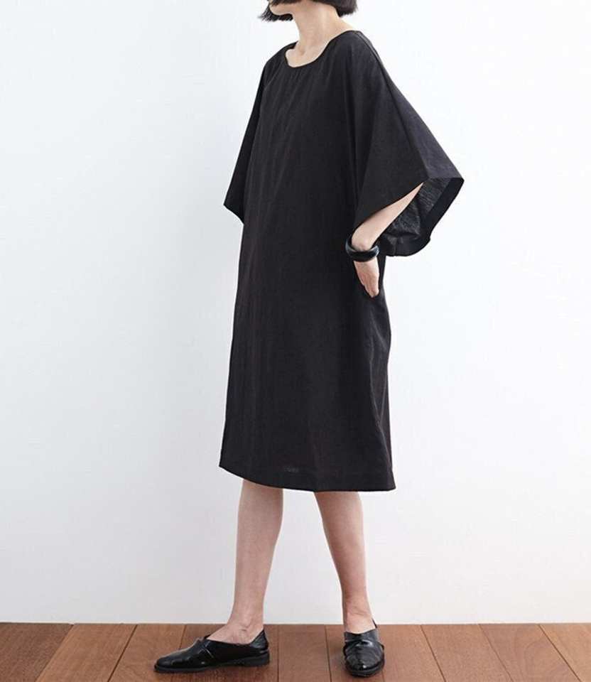 Product Name:Linen Midi Dress Short Sleeve Dress