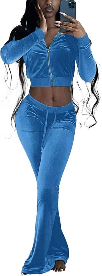 Femmes XL décontracté solide motif haut court support veste zippée pantalon évasé deux pièces velours survêtement hiver court toile tissu