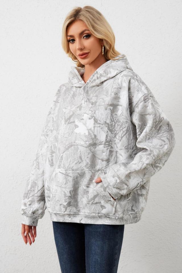 Women's XL Oversized Cotton Fleece Hoodie Anti-Wrinkle Camouflage Pattern Wholesale Solid Pattern Hooded Sweatshirt for Winter