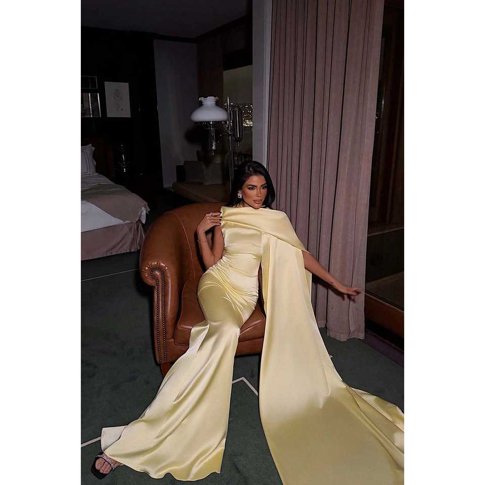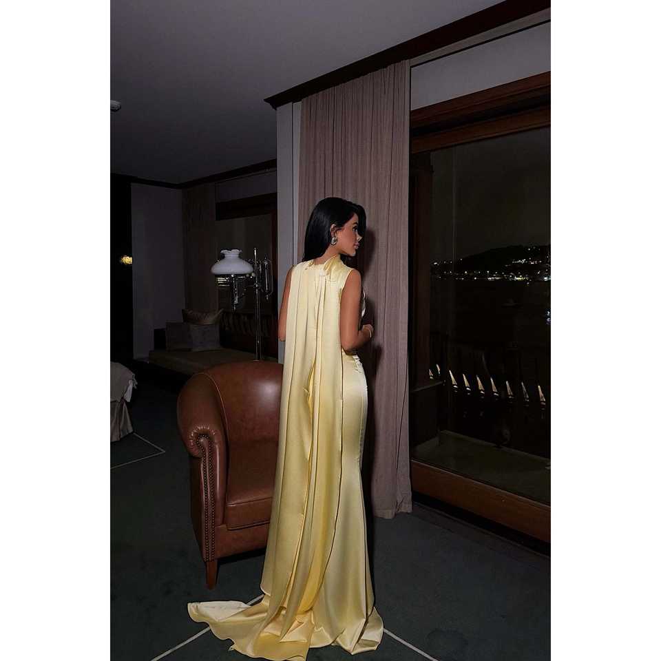 Women's Yellow Belt Detail Long Ball Gown Dress XS Size Empire Waistline Formal Party & Wedding Guest Evening Dress