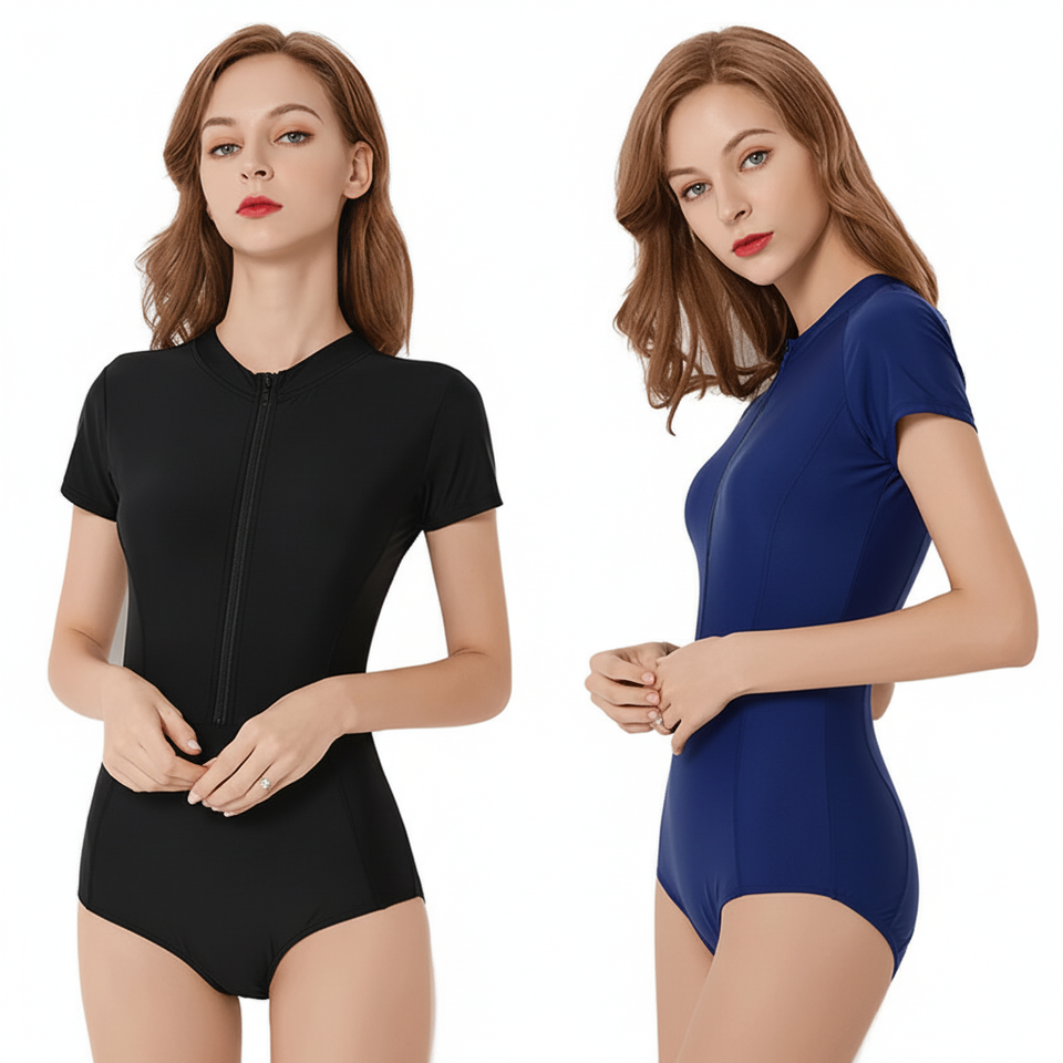 Combinaison de bain une pièce à fermeture éclair pour femmes, tenue de surf modeste, combinaison de plongée grande taille, imprimé uni, L-4XL, 1 pièce, séchage rapide