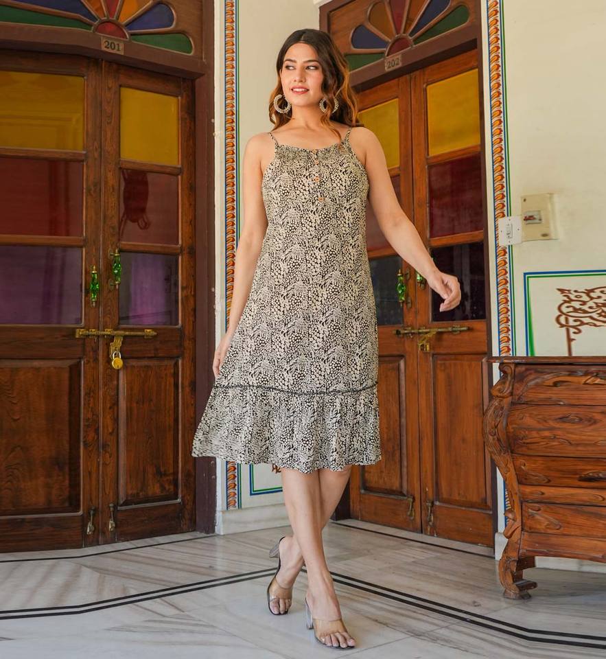 Women's black rayon floral printed a-line dress with sleeveless style and round neck, comfortable casual wear in xl size fashion
