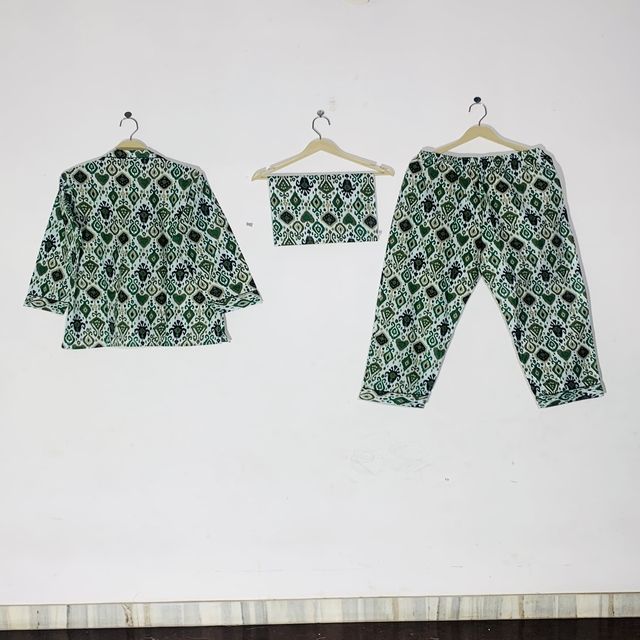 Ensemble de pyjama floral imprimé à la main pour femme - Vêtements de nuit en coton artisanal, tenue de sommeil et de détente bohème pour l'été, cadeau