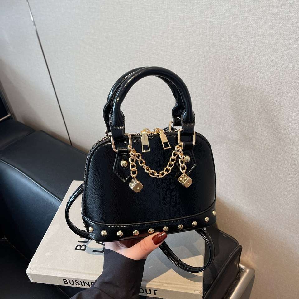 Women's high-end fashion shoulder crossbody bag, fashionable women's handbag, rivet solid color