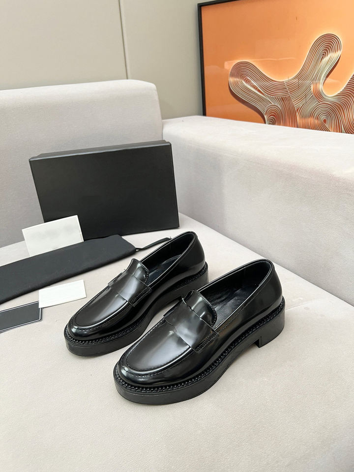 Women's lightweight low-heeled leather shoes black designer style versatile