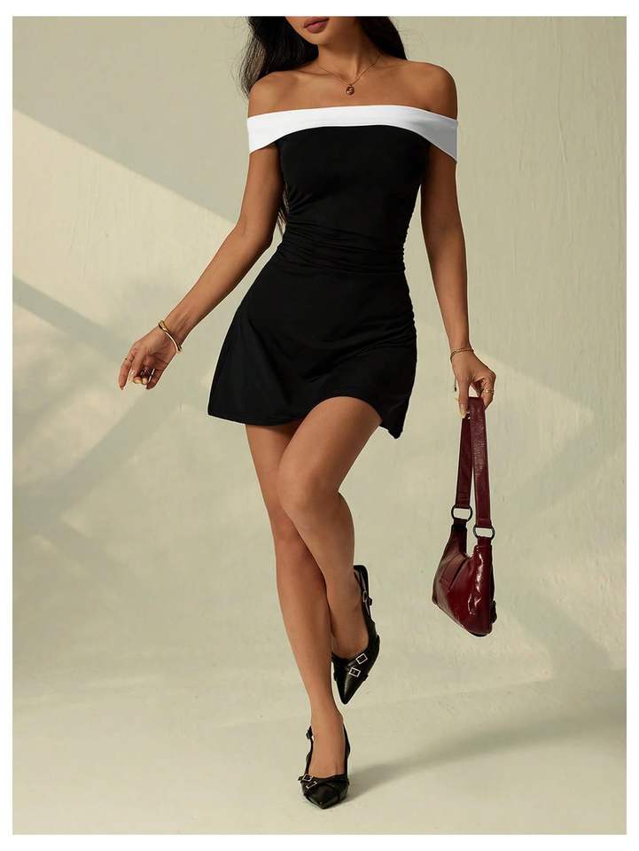 Women's off the Shoulder Bodycon Mini Dress Solid Romantic Natural Elegant Classy Summer Wedding Guest Cocktail Party Sundresses