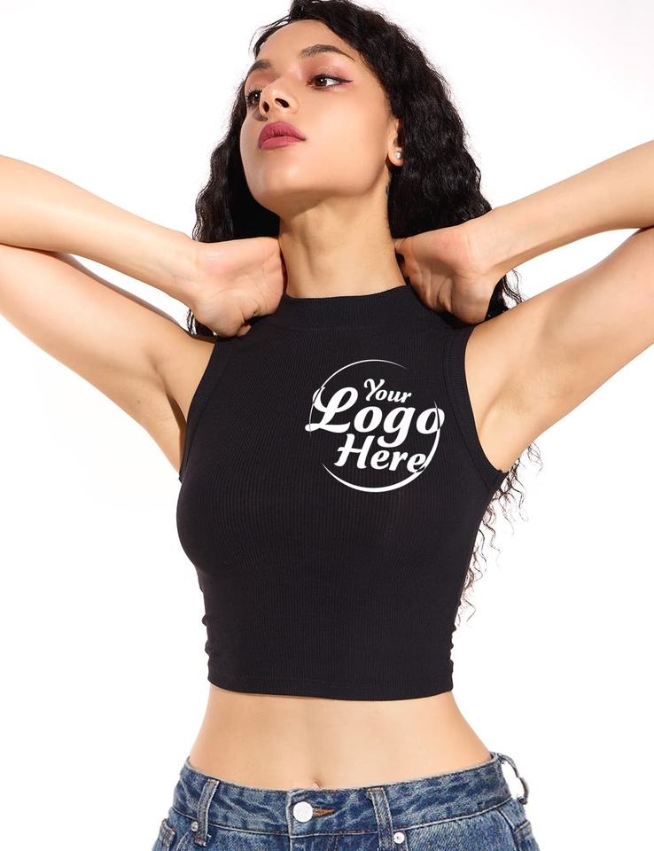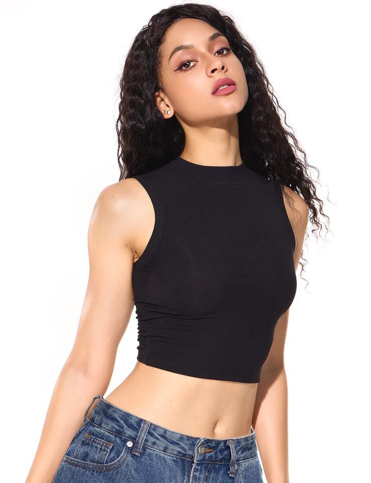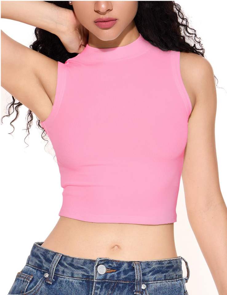 Women's Women's Party Wear Ribbed Crop Tops, Sleeveless Mock Neck Tank Tops for Summer Clothes Womens tank Top