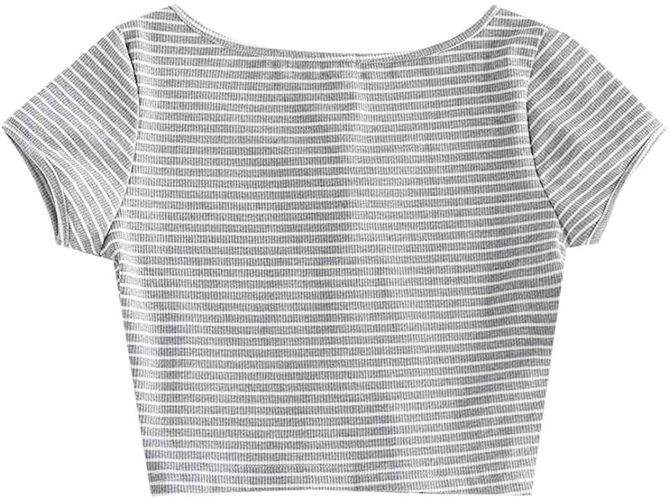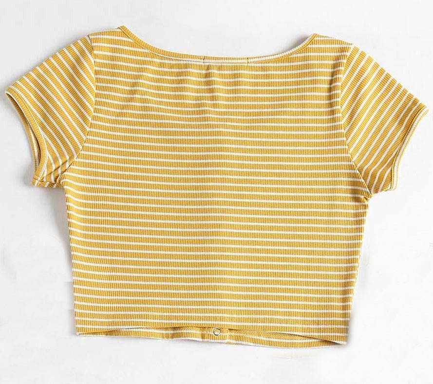 Product Type:Women stripe Short Sleeve Crop V Neck T Shirts