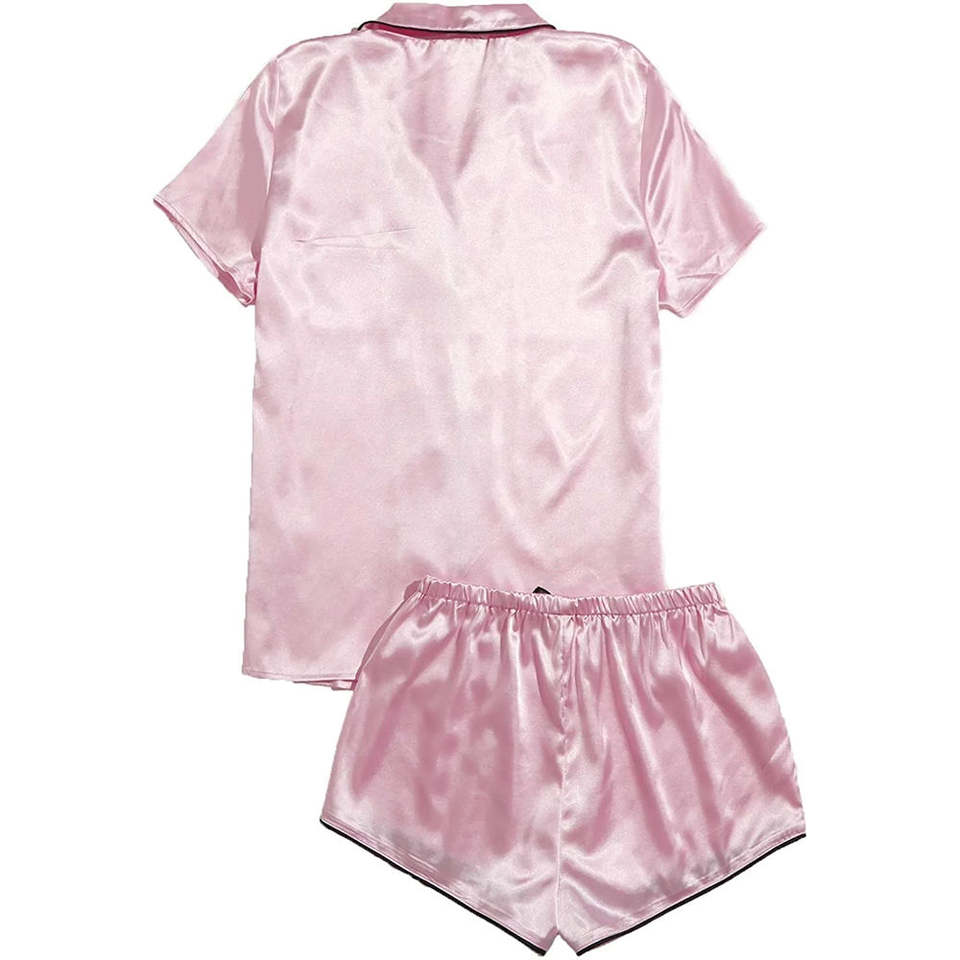 Women satin sleepwear short set silky breathable soft smooth lightweight nightwear comfy pajama set elegant home comfort wear