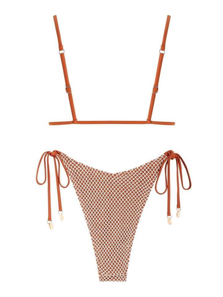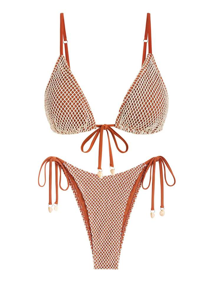 WomenTriangleString Bikini deux pièces FishnetMeshTieShell Decor Tanga Maillot de bain 2 pièces