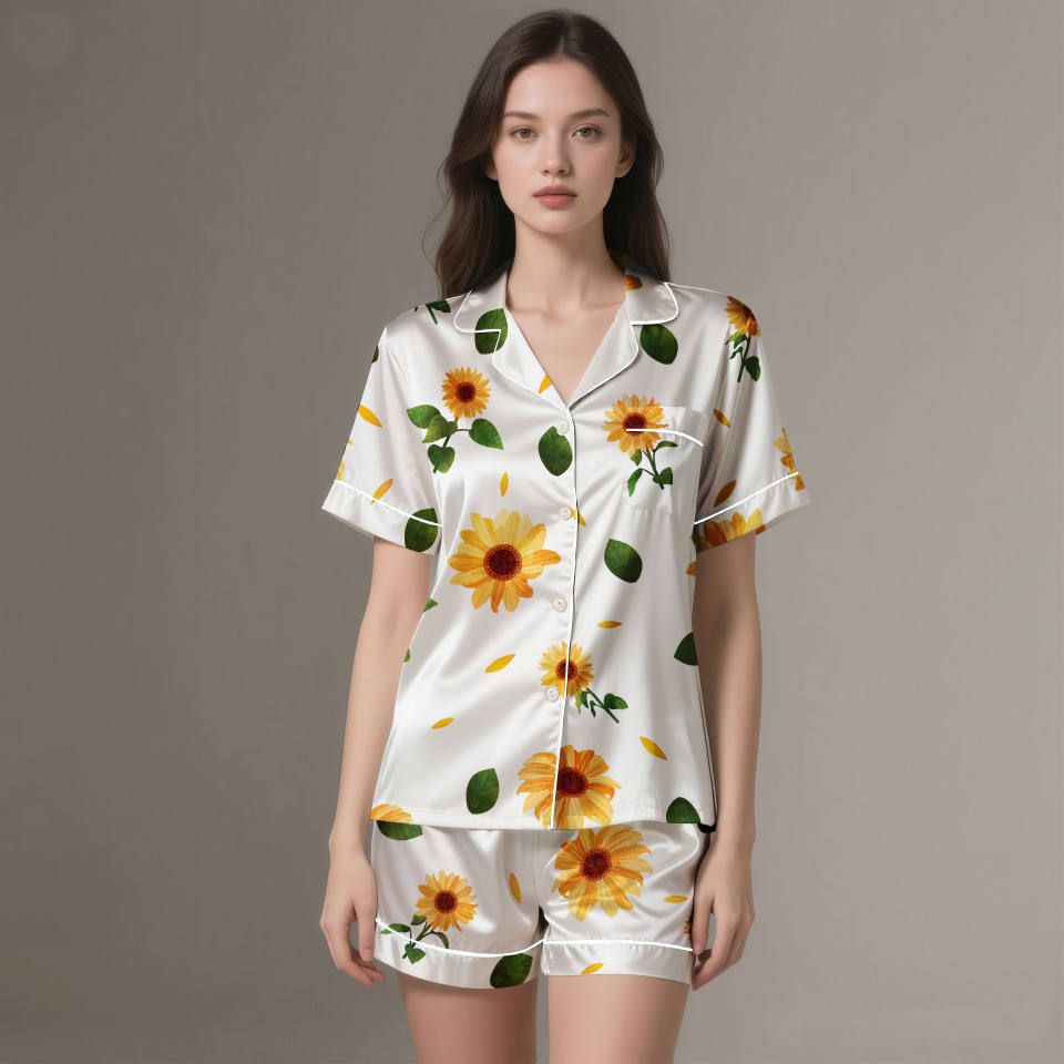Women's 100% Silk Satin 2-Piece Summer Autumn Spring Luxury Comfortable Breathable Sleepwear Set