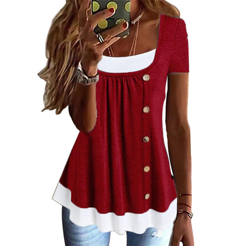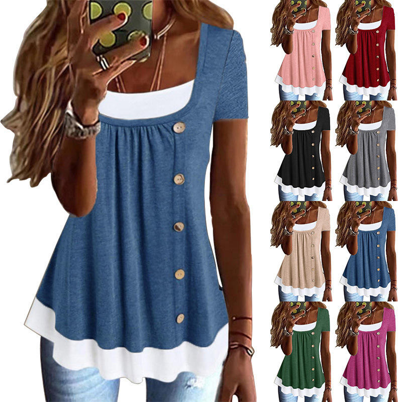 Femmes bouton volants tunique hauts dames à manches courtes été décontracté ample t-shirts vêtements 2023