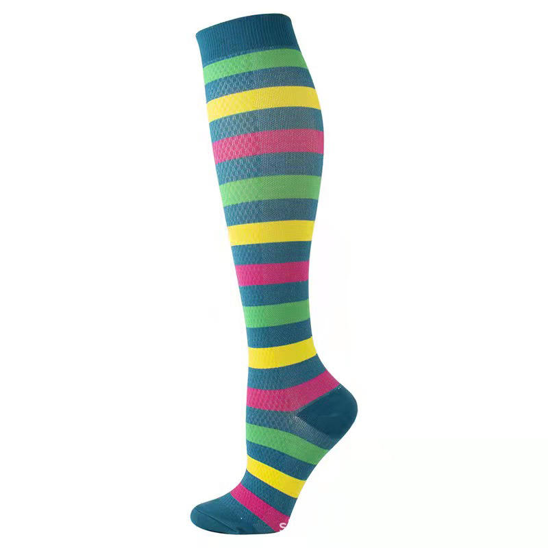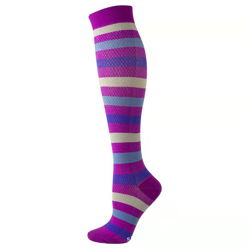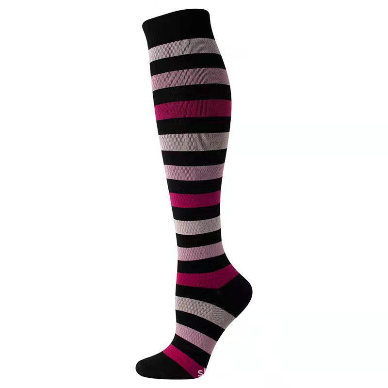 Chaussettes de compression pour femmes, chaussettes hautes en nylon rayées, chaussettes décontractées à la mode