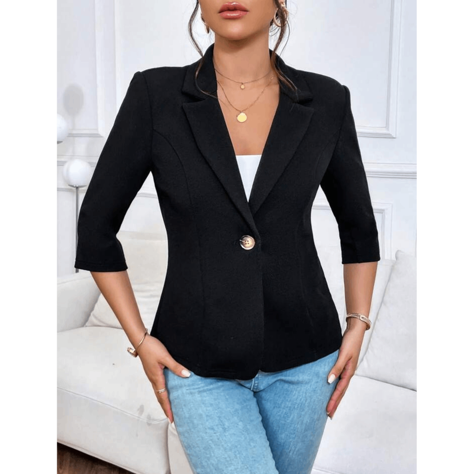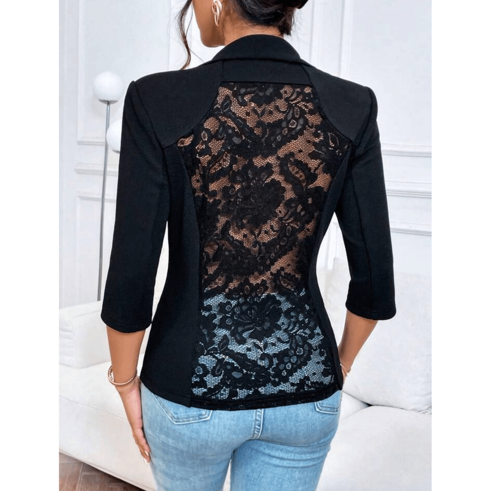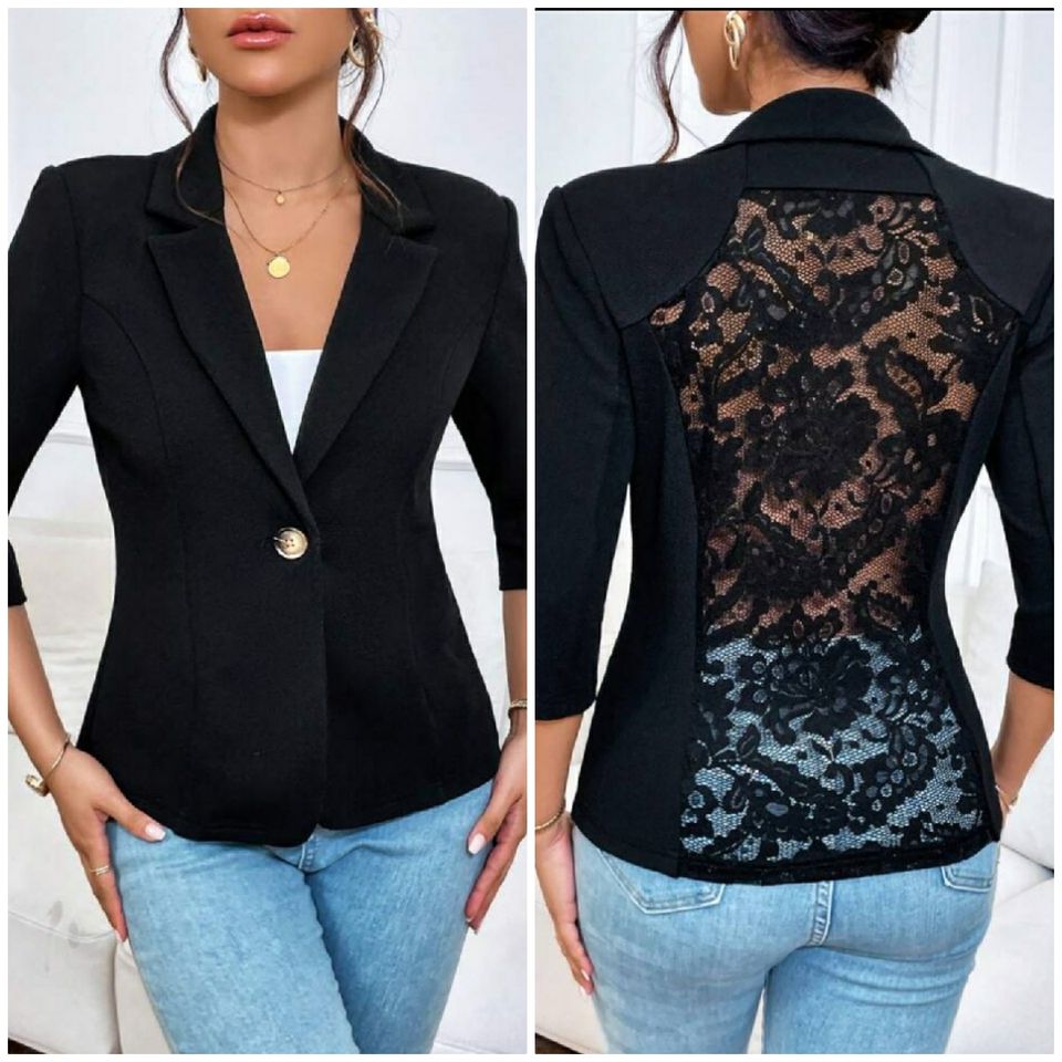 Blazer à bouton unique en dentelle florale contrastante pour femme, une version féminine du classique blazer noir