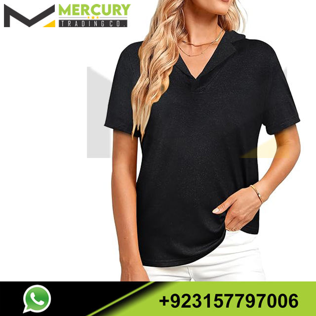 T-shirts à logo personnalisé pour femmes chemise à col en V à revers pour tenue décontractée t-shirt de vente de qualité supérieure