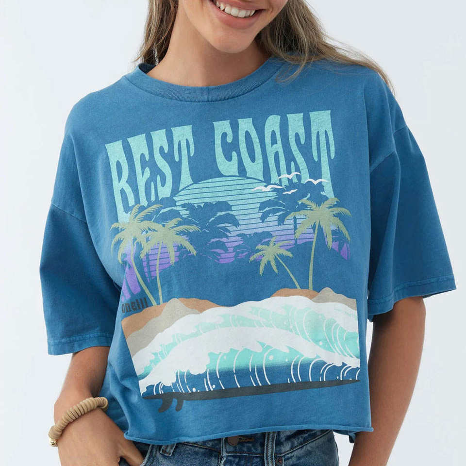 T-shirt décontracté à manches courtes pour femme, personnalisable, couleur unie, style Côte Ouest, en coton écologique respirant et à séchage rapide, imprimé