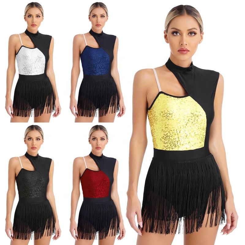 Femmes découpe sans manches Latin Patchwork frangé body pour femmes fête scène Dancewear Performance porter