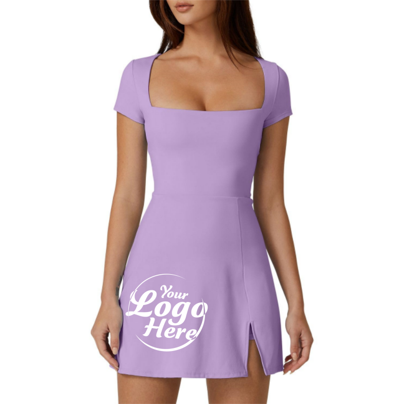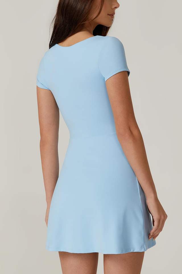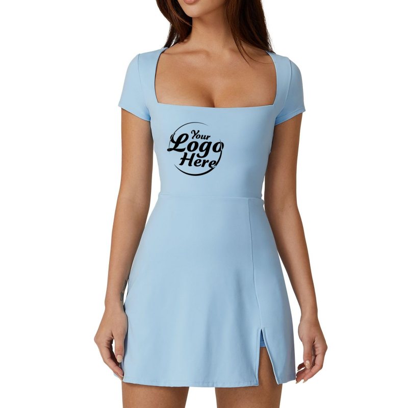 Womens Elegant Evening Dress Square Neck Tennis Dress Short Sleeve Built in Shorts Golf Athletic Dress with Pockets