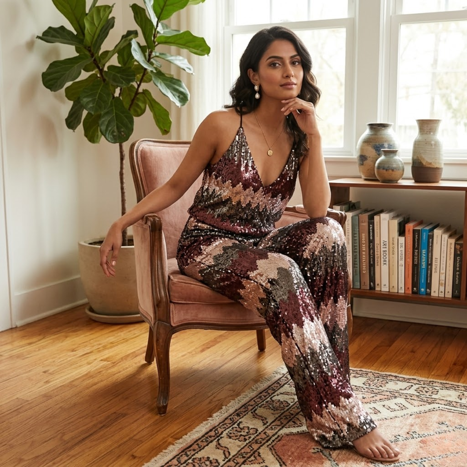 Ensemble short 2 pièces pour femme, col halter, sequins brodés | Robe longue sans manches à col en V et jambes larges pour soirée formelle