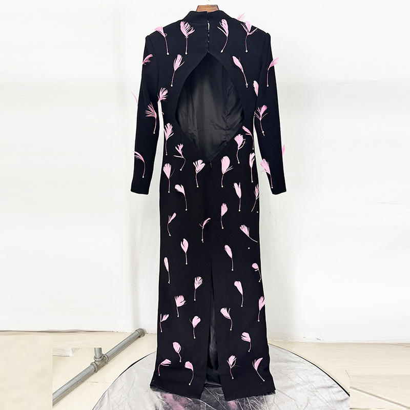 Womens Fashion Clothes 2025 Luxury Evening Gown Long Bodycon Dress Feather Backless Design Elegant Party Dresses for Hostess