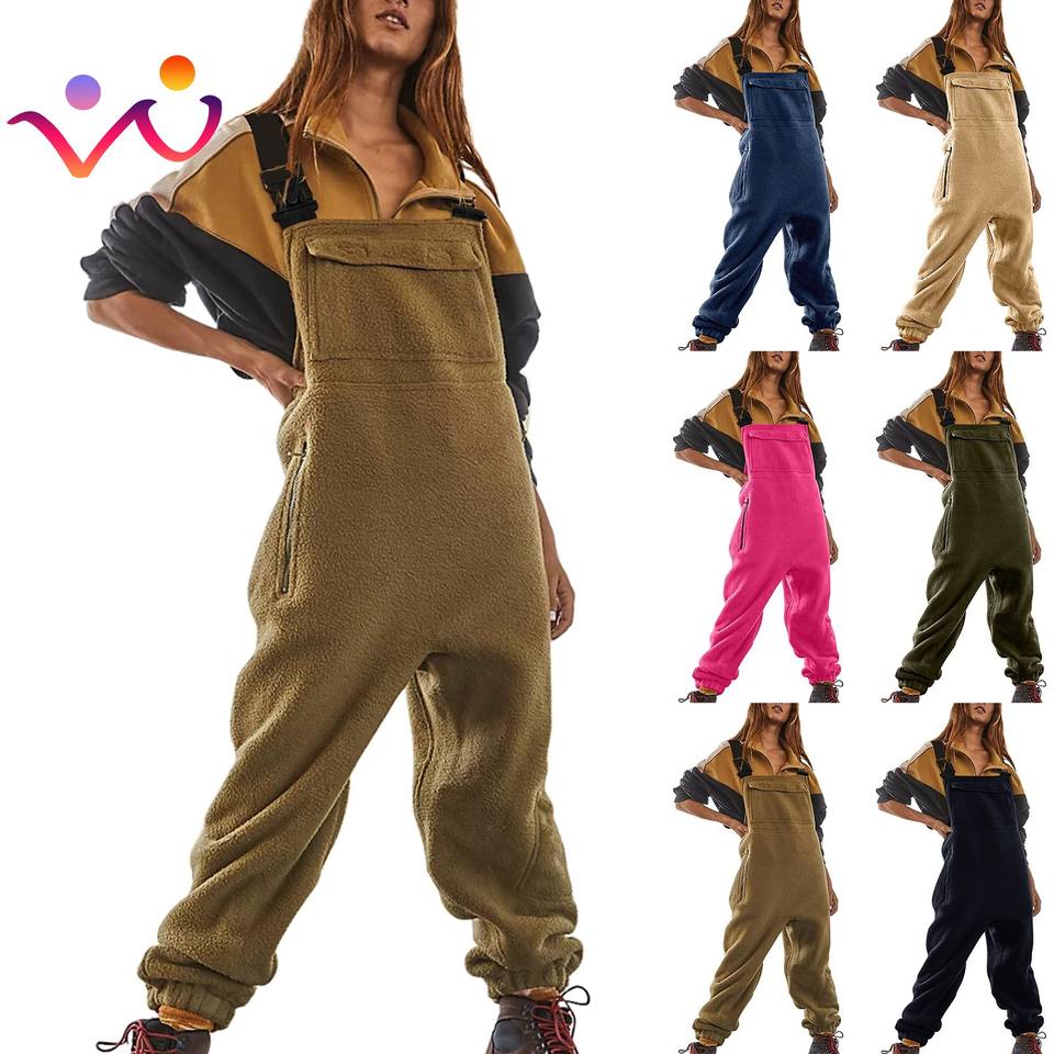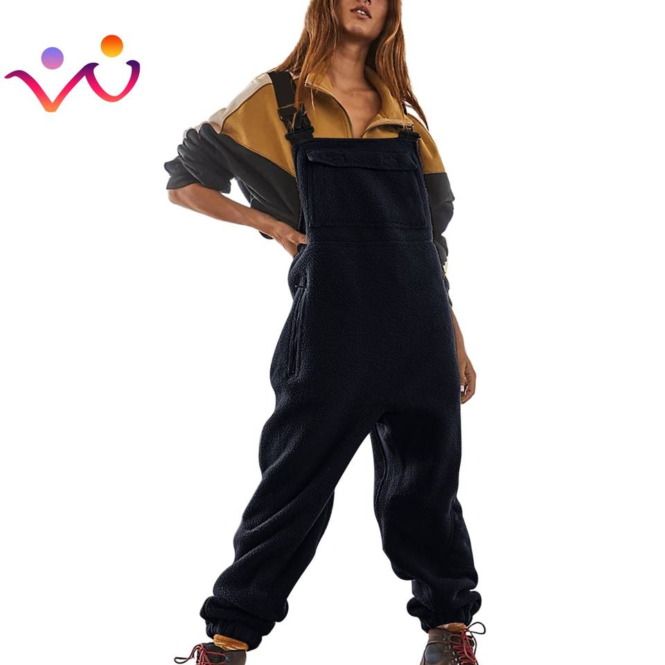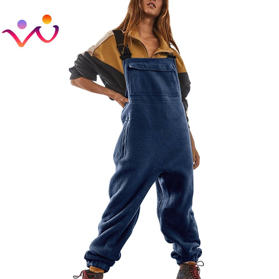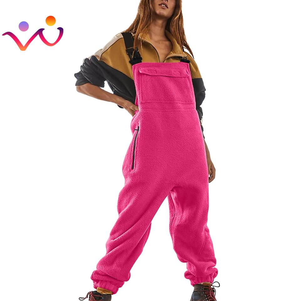 Femmes polaire salopette une pièce bavoirs combinaisons bretelles réglables chaud hiver floue Ski pantalon une pièce combinaison