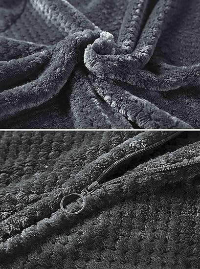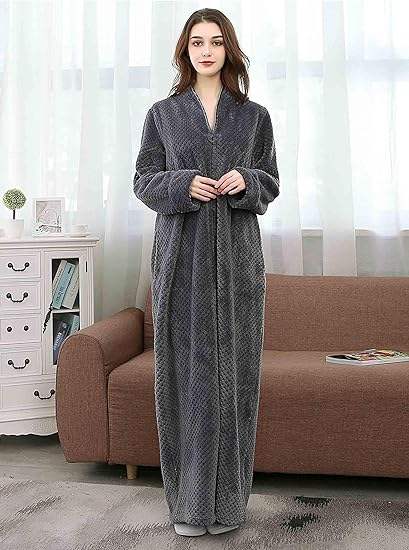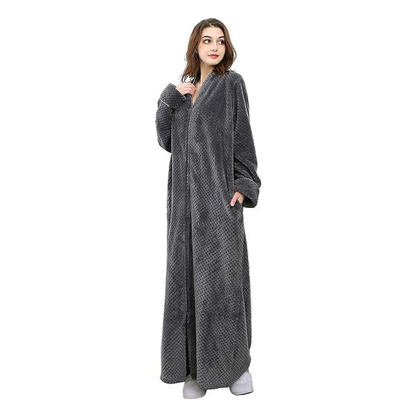 Robe polaire pour femme Peignoir en peluche à fermeture éclair longue avec poches Peignoirs chauds et doux à fermeture éclair pour femme
