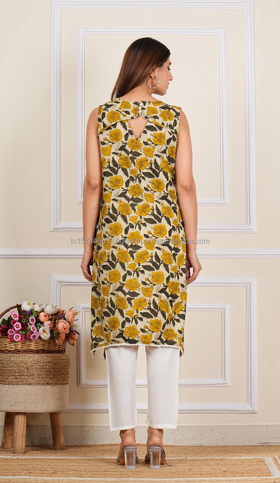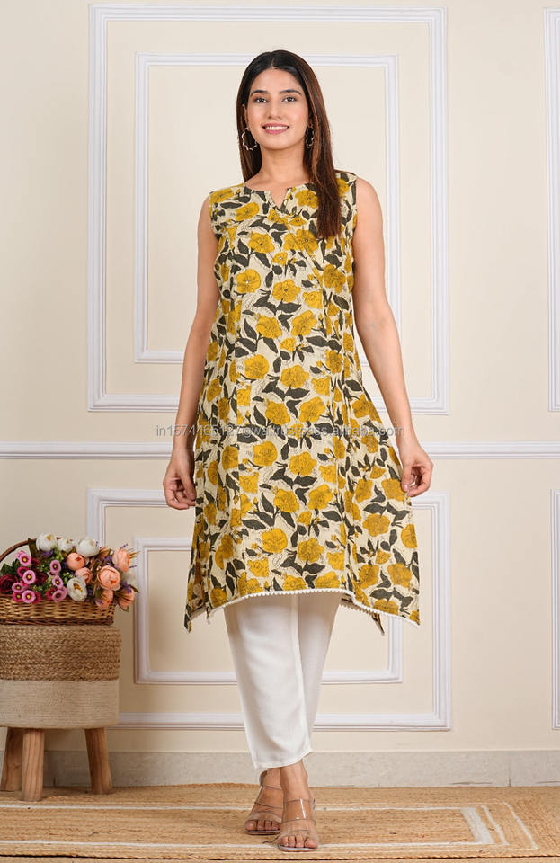 Nom du produit:Costumes en coton à imprimé bloc à la main et Kurtis