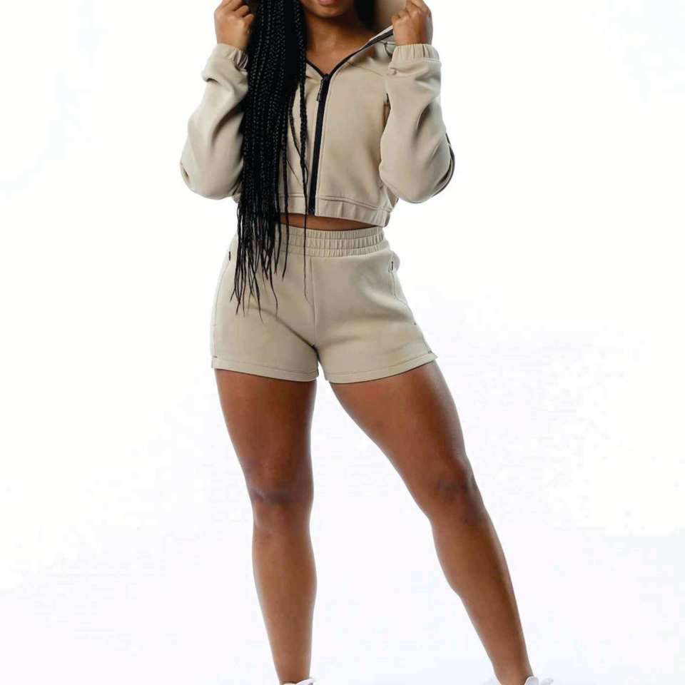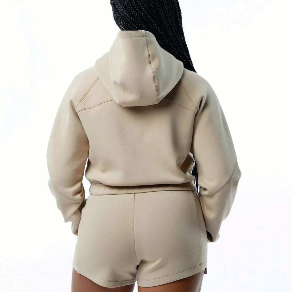 Femmes poche avant surdimensionné polaire à l'intérieur Crop luxe sweats à capuche et sweat à capuche fermeture éclair 2 pièces ensemble tenue décontracté 2026