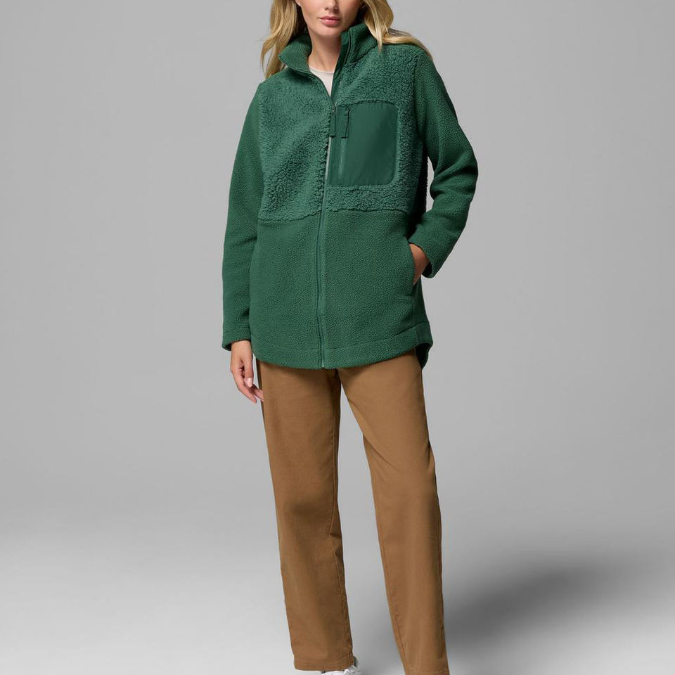 Veste zippée en polaire verte pour femmes, long manteau en sherpa, col montant, vêtement d'extérieur chaud, doux, léger, confortable, poche avant, automne, hiver, couche