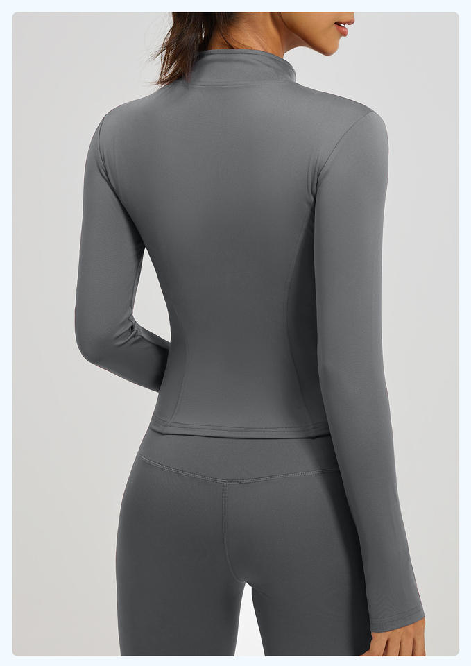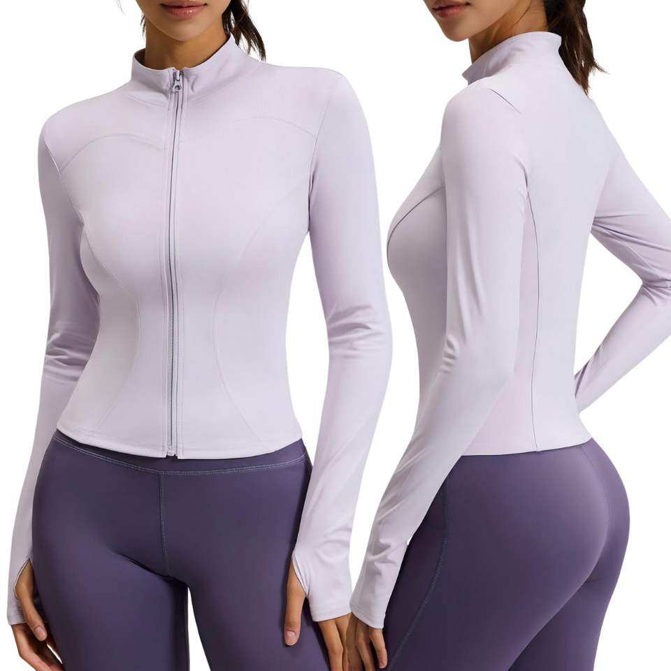Veste de sport zippée pour femme, manches longues, coupe ajustée, haut d'entraînement avec trous pour les pouces