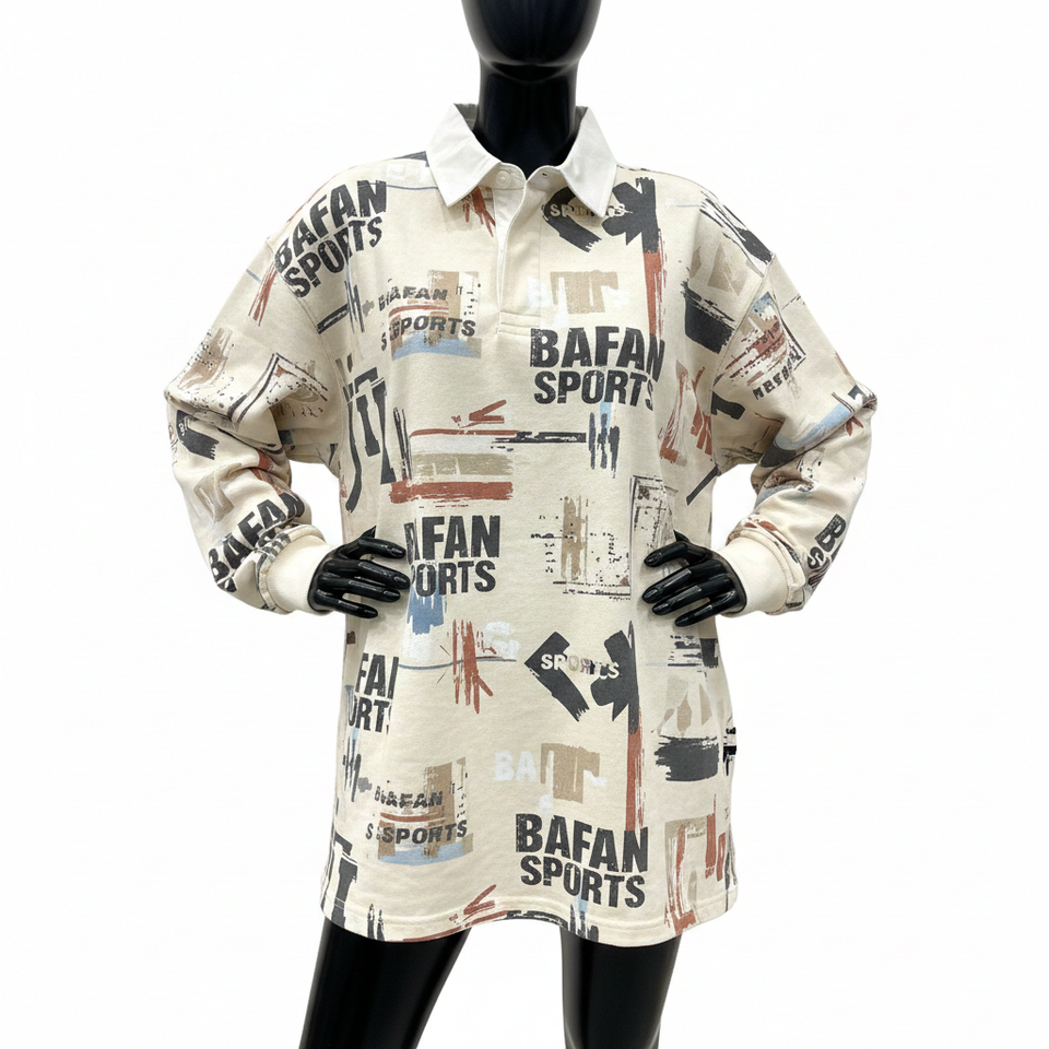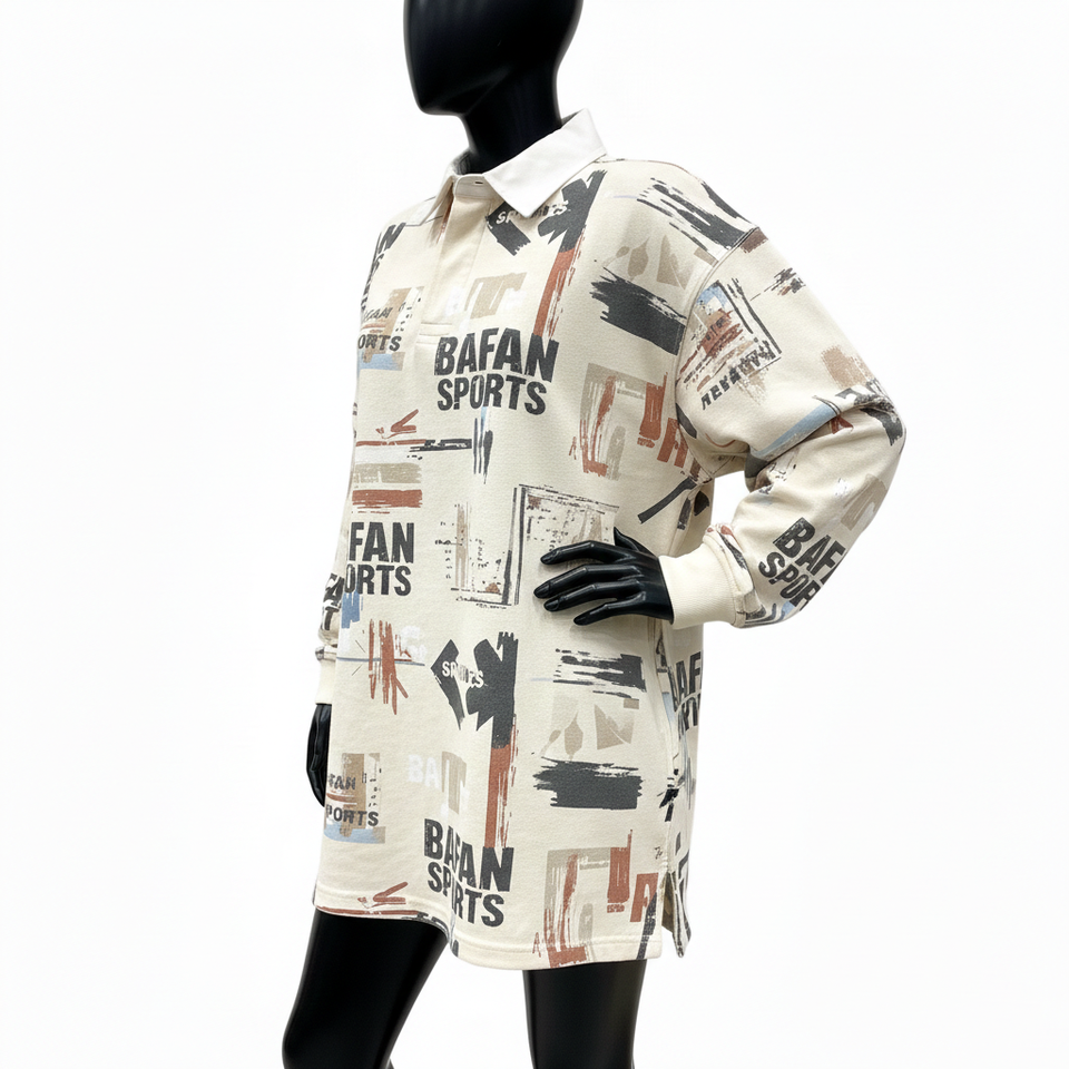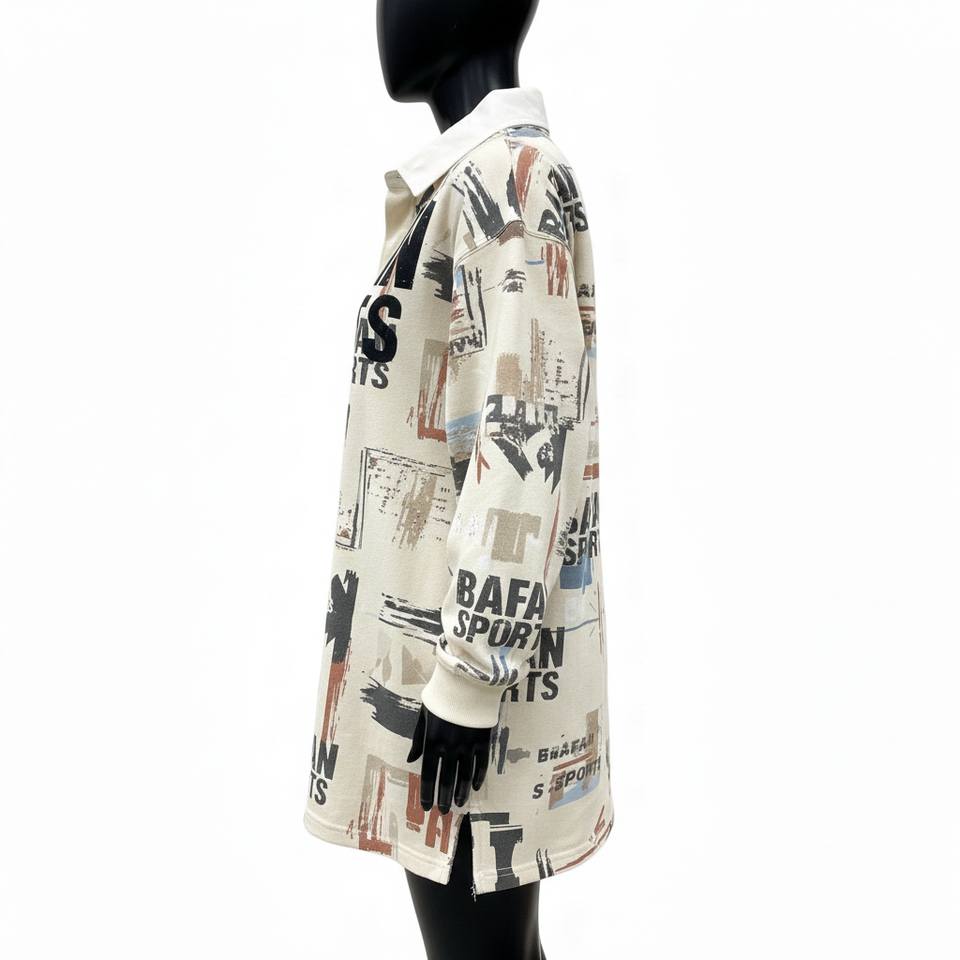 T-shirt de rugby pour femme en coton épais, jersey doux, imprimé abstrait crème, décontracté, avec logo personnalisé, tendance