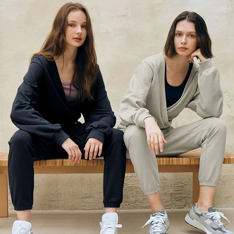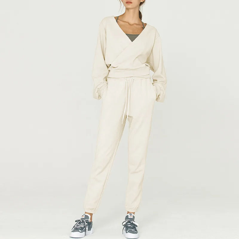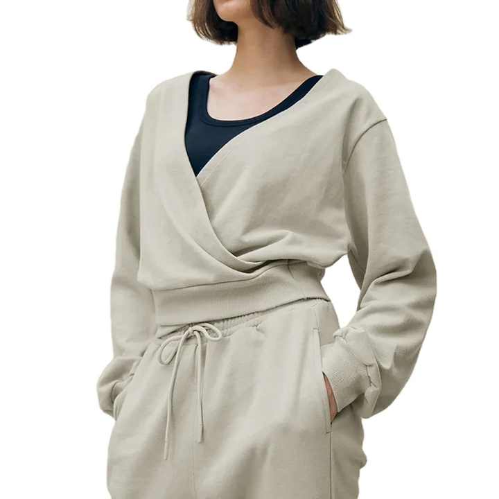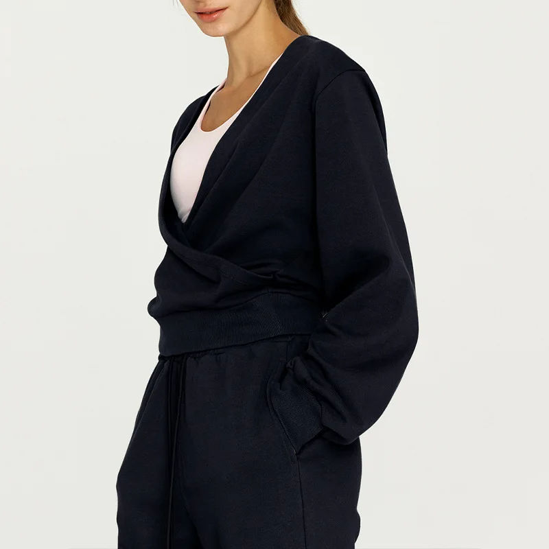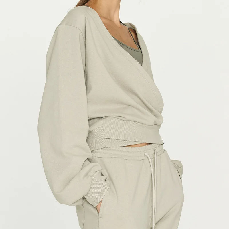 Womens High Quality Cotton Hoodies Long Sleeve Pullover Crop Top Deep V Neck Sweatshirt