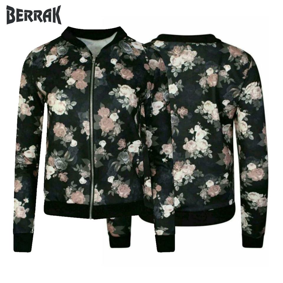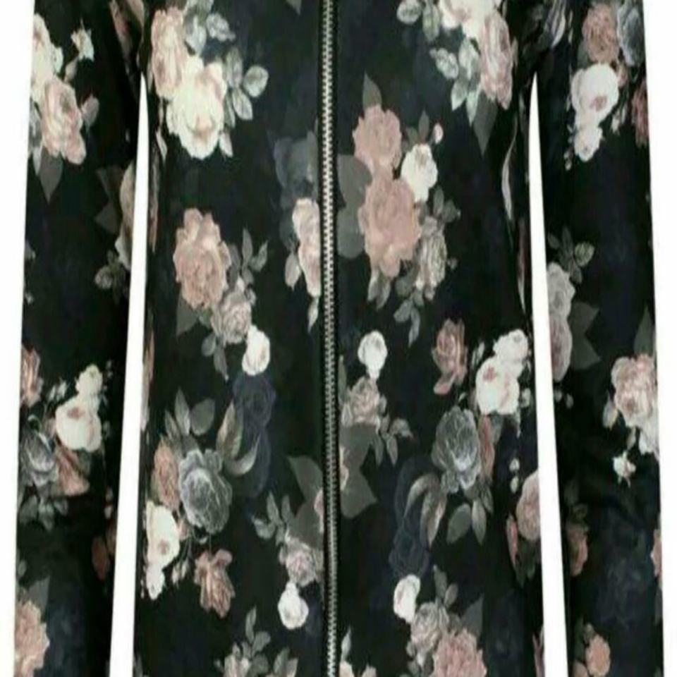 Femmes Dames Vestes Bomber Fleur Floral Imprimé Motard Manteaux Casual Outwear 8-22