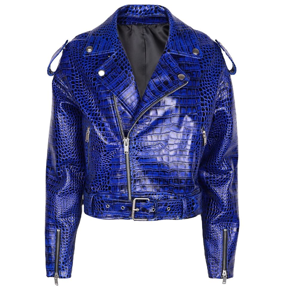 Veste en cuir pour femme, dernier design, motif Gavialidae en relief, fournisseur de vestes en cuir pour femme, logo personnalisé