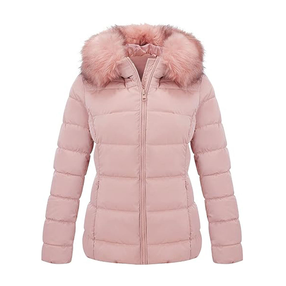Veste matelassée légère pour femme Manteaux d'hiver Manteau à capuche rembourré à bulles matelassé chaud avec col en fausse fourrure