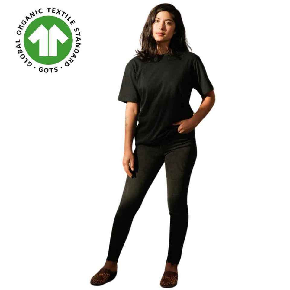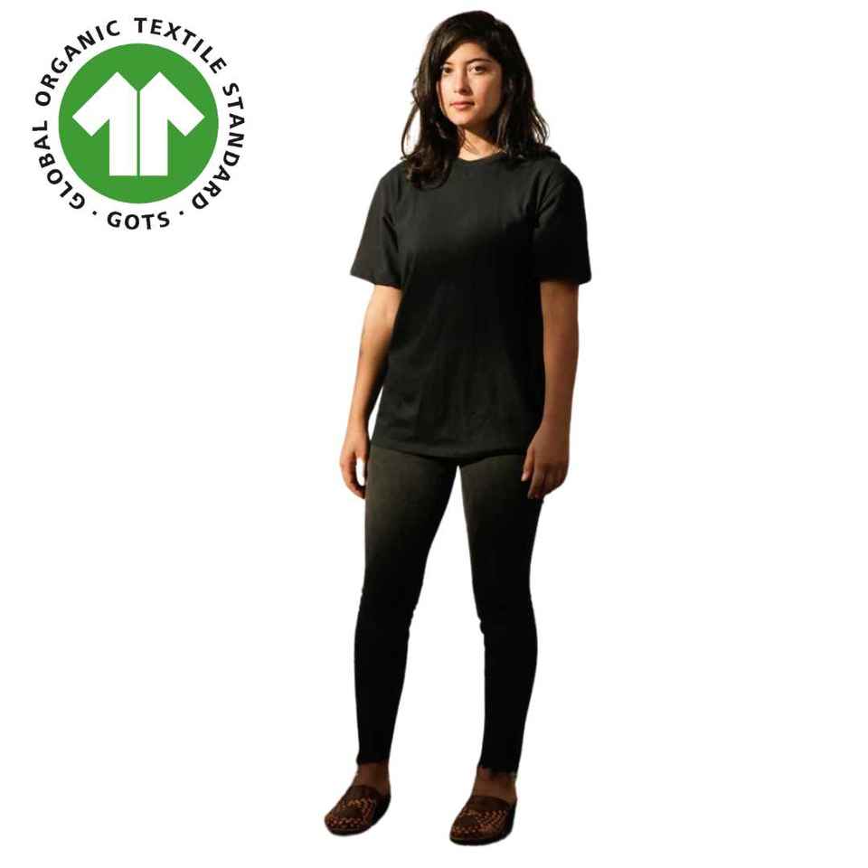 T-shirt à manches raglan en coton biologique pour femme noir, maillot 4.3 oz, manches courtes, coupe décontractée, doux et respirant