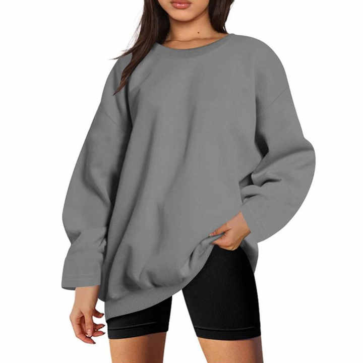 Femmes surdimensionné col rond sweats lâche goutte épaule à manches longues pulls habillé décontracté plaine automne hauts pour les femmes