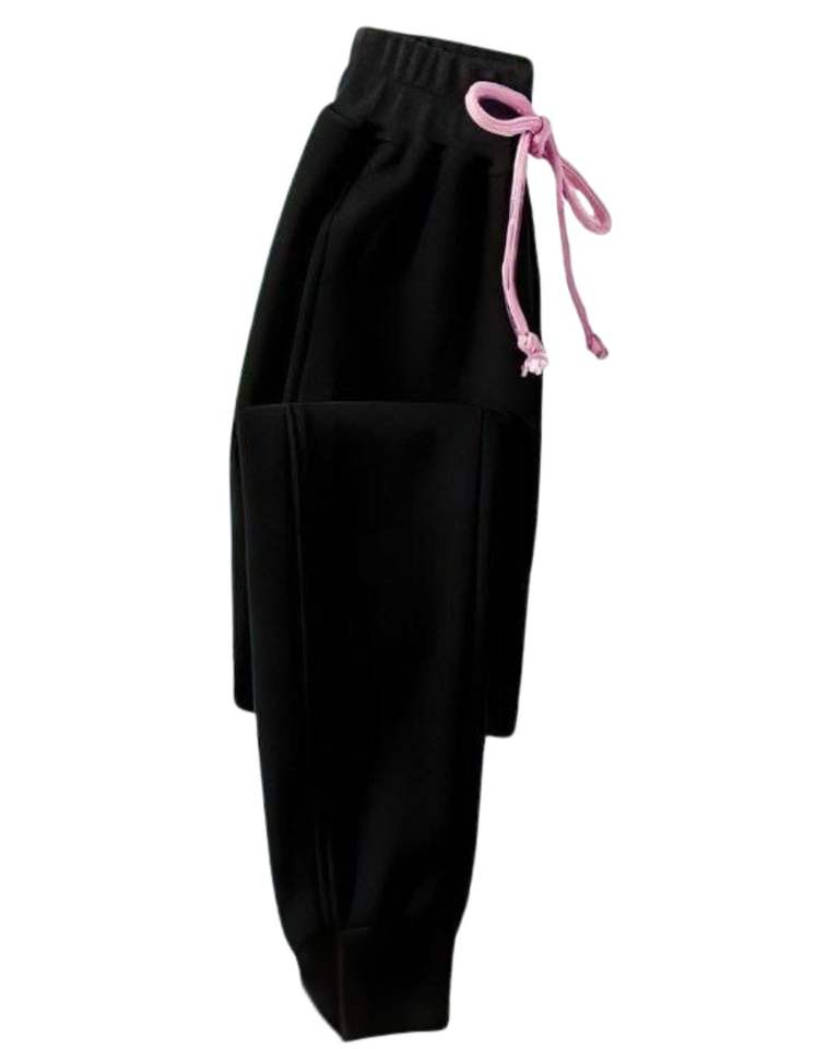 Womens Pink Hoodie With Black Jogger Set Finger Heart Print Cotton Fleece Casual Tracksuit Two Piece Sweat Suit OEM Plus