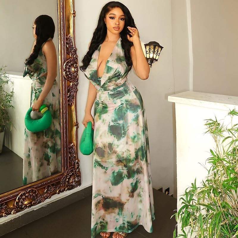 Ensemble 2 pièces en mousseline imprimée pour femmes, haut à col en V et jupe longue, tenue de plage d'été respirante sans manches