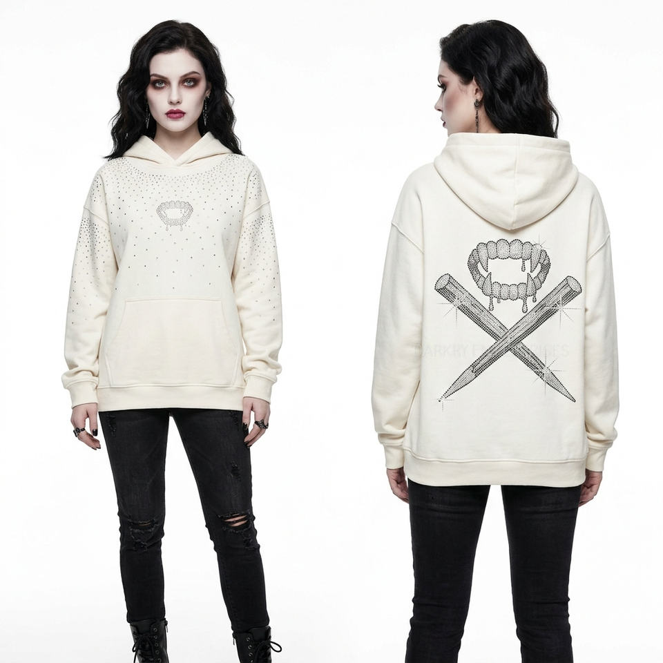 Sweat-shirt à capuche personnalisé pour femme avec strass, motif chauve-souris, couleur crème, streetwear, fabricant de vêtements sans marque